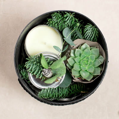 Elegancki wygląd i niska cena - zestaw idealny dla pracowników. Zestaw zawiera: sukulent ( wys. 7cm ), świeczka o zapachu waniliowym ( średnica ok. 6,5cm ), czarne pudełko prezentowe ( średnica 15cm, wysokość 15 cm )